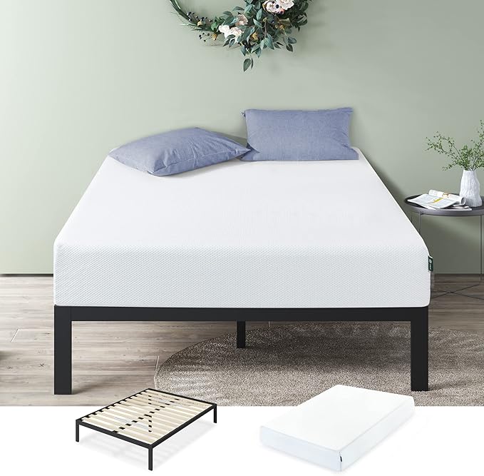 ZINUS 12 Inch Green Tea Cooling Gel Memory Foam Mattress and Mia Platform Bed Frame Set / Bed and Mattress Set / No Box Spring Needed / Mattress in a Box, Queen