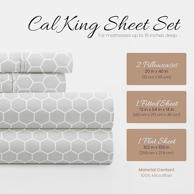Linen Market 4 Piece California King Bedding Sheet Set (Gray Geometric) - Sleep Better Than Ever with These Ultra-Soft & Cooling Bed Sheets for Your Cal King Size Bed - Deep Pocket Fits 16" Mattress