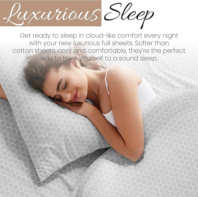 Linen Market 4 Piece Full Bedding Sheet Set (Gray Geometric) - Sleep Better Than Ever with These Ultra-Soft & Cooling Bed Sheets for Your Full Size Bed - Deep Pocket Fits 16" Mattress