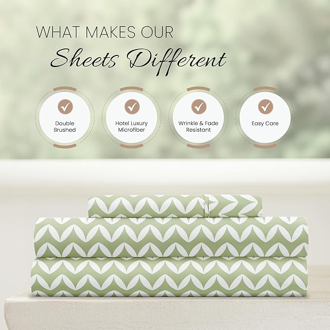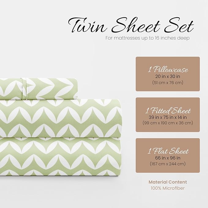 Linen Market 3 Piece Twin Bedding Sheet Set (Sage Chevron) - Sleep Better Than Ever with These Ultra-Soft & Cooling Bed Sheets for Your Twin Size Bed - Deep Pocket Fits 16" Mattress