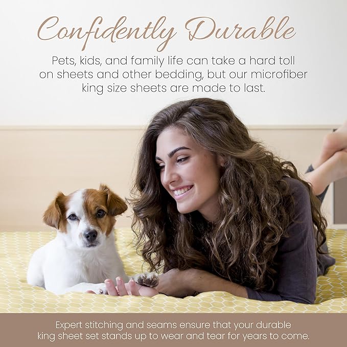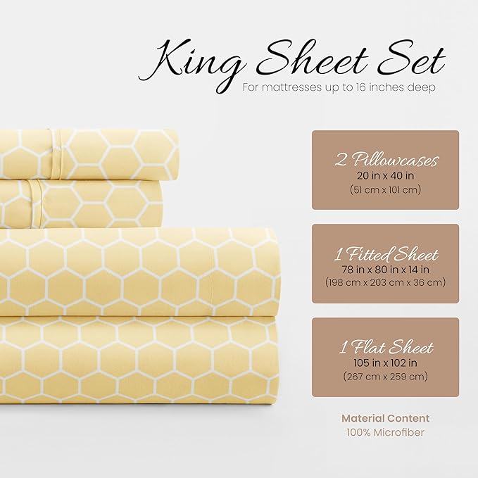 Linen Market 4 Piece King Bedding Sheet Set (Yellow Geometric) - Sleep Better Than Ever with These Ultra-Soft & Cooling Bed Sheets for Your King Size Bed - Deep Pocket Fits 16" Mattress