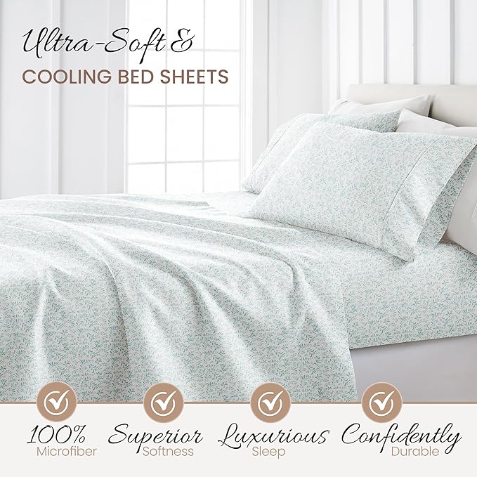 Linen Market 4 Piece King Bedding Sheet Set (Light Blue Vines) - Sleep Better Than Ever with These Ultra-Soft & Cooling Bed Sheets for Your King Size Bed - Deep Pocket Fits 16" Mattress