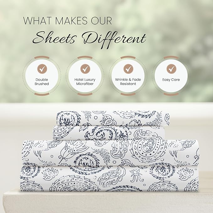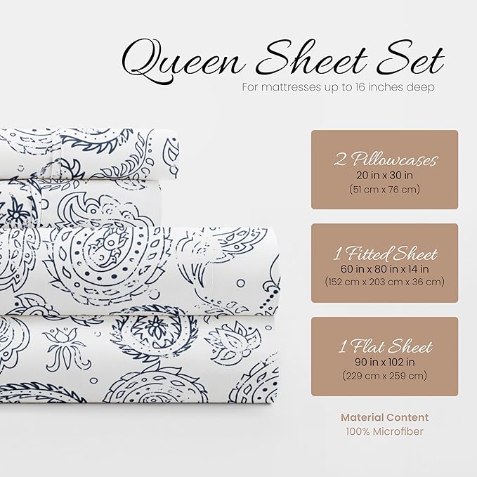 Linen Market 4 Piece Queen Bedding Sheet Set (Navy Floral) - Sleep Better Than Ever with These Ultra-Soft & Cooling Bed Sheets for Your Queen Size Bed - Deep Pocket Fits 16" Mattress