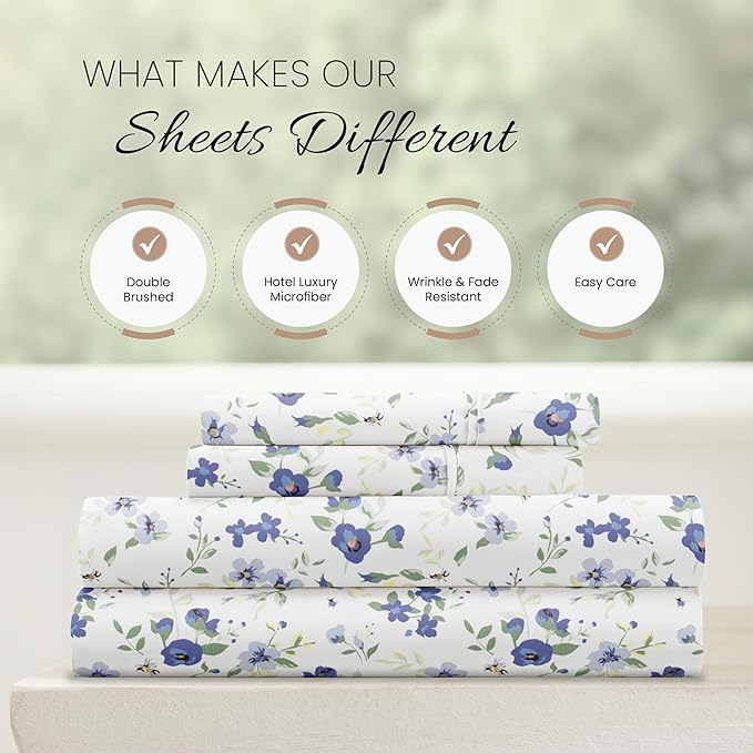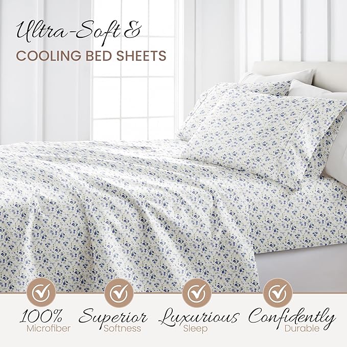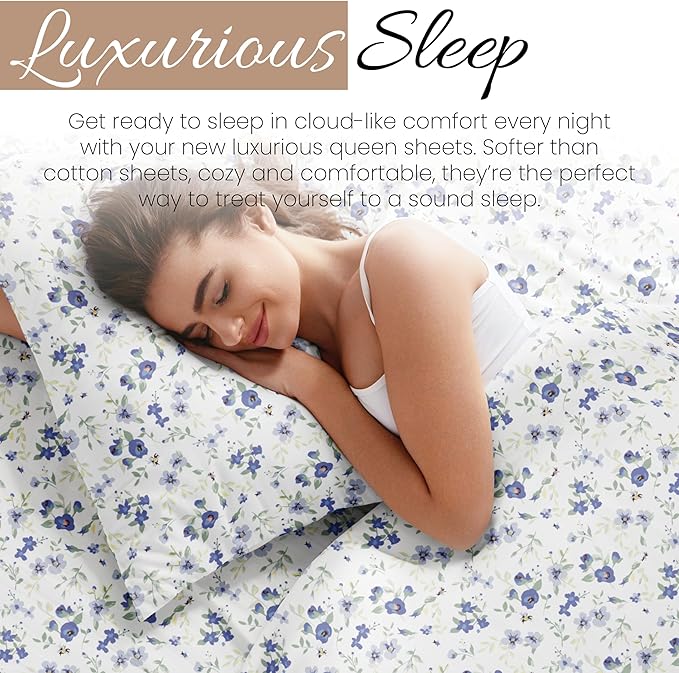 Linen Market 4 Piece Queen Sheet Set (Light Blue Floral) - Sleep Better Than Ever with These Ultra-Soft & Cooling Bed Sheets for Your Queen Size Bed - Deep Pocket Fits 16" Mattress