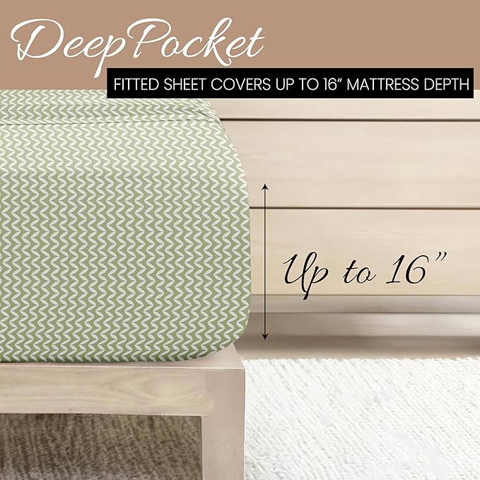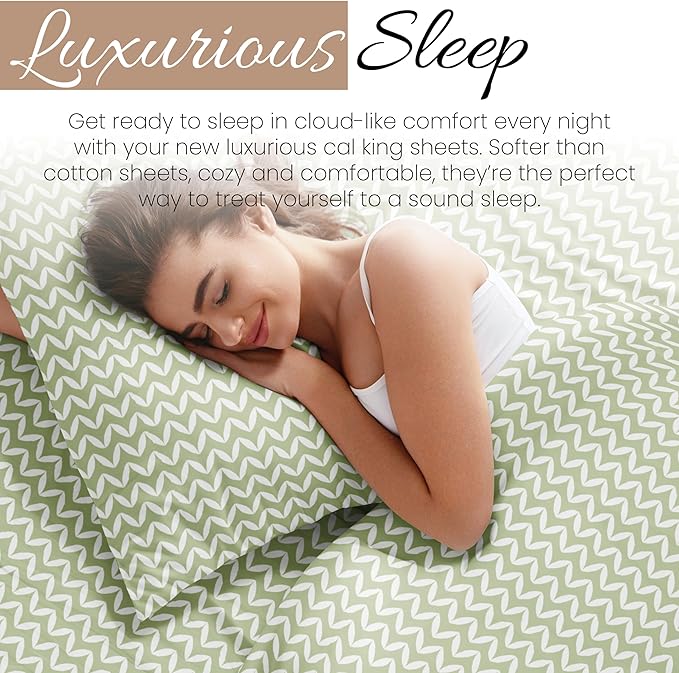 4 Piece California King Bedding Sheet Set (Sage Chevron) - Sleep Better Than Ever with These Ultra-Soft & Cooling Bed Sheets for Your Cal King Size Bed - Deep Pocket Fits 16" Mattress