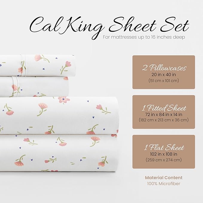 Linen Market 4 Piece California King Bedding Sheet Set (Pink Floral) - Sleep Better Than Ever with These Ultra-Soft & Cooling Bed Sheets for Your Cal King Size Bed - Deep Pocket Fits 16" Mattress
