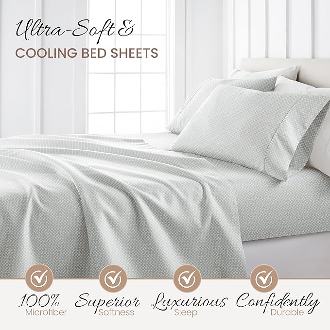 4 Piece Full Bedding Sheet Set (Gray Scallops) - Sleep Better Than Ever with These Ultra-Soft & Cooling Bed Sheets for Your Full Size Bed - Deep Pocket Fits 16" Mattress