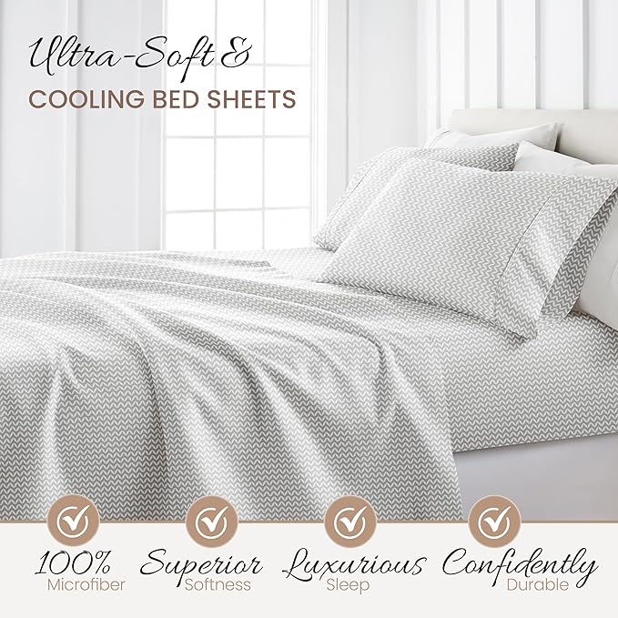 Linen Market 4 Piece Puffed Chevron Patterned Premium Ultra Soft Bed Sheet Set, California King, Gray