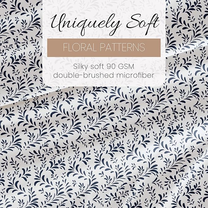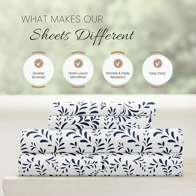 Linen Market 4 Piece Queen Bedding Sheet Set (Navy Vines) - Sleep Better Than Ever with These Ultra-Soft & Cooling Bed Sheets for Your Queen Size Bed - Deep Pocket Fits 16" Mattress