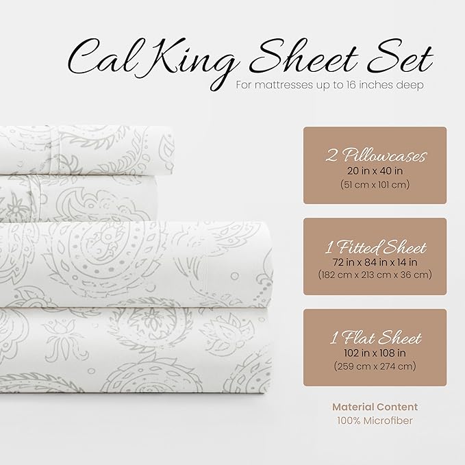 4 Piece California King Bedding Sheet Set (Gray Floral) - Sleep Better Than Ever with These Ultra-Soft & Cooling Bed Sheets for Your Cal King Size Bed - Deep Pocket Fits 16" Mattress