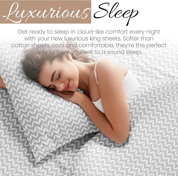 Linen Market 4 Piece King Bedding Sheet Set (Gray Chevron) - Sleep Better Than Ever with These Ultra-Soft & Cooling Bed Sheets for Your King Size Bed - Deep Pocket Fits 16" Mattress