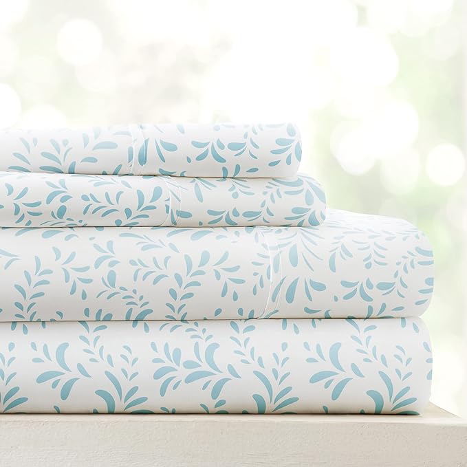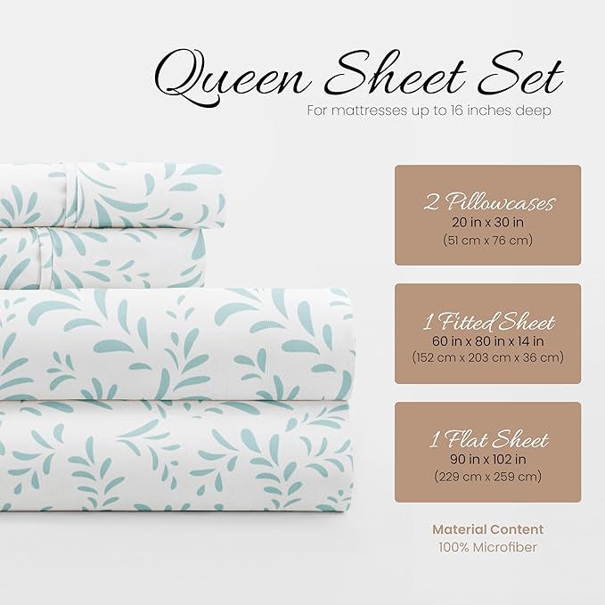Linen Market 4 Piece Queen Bedding Sheet Set (Light Blue Vines) - Sleep Better Than Ever with These Ultra-Soft & Cooling Bed Sheets for Your Queen Size Bed - Deep Pocket Fits 16" Mattress