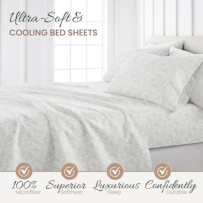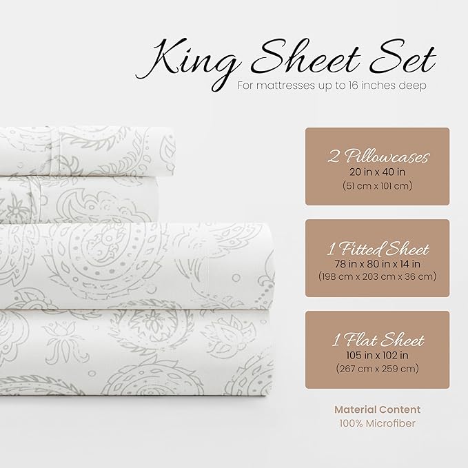 Linen Market 4 Piece King Sheet Set (Light Gray Floral) - Sleep Better Than Ever with These Ultra-Soft & Cooling Bed Sheets for Your King Size Bed - Deep Pocket Fits 16" Mattress