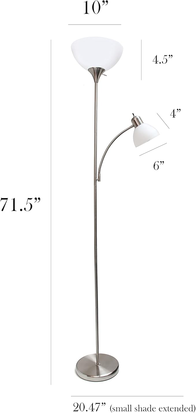 Simple Designs LF2000-BSN Mother-Daughter Floor Lamp with Reading Light, Brushed Nickel