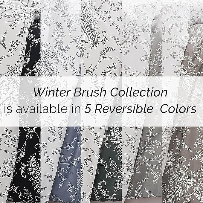 Southshore Fine Living, Inc. Oversized King Comforter Set, Down Alternative Floral Comforter with Matching Shams, Reversible Print is 2 Colors in 1, Fits King/Cal King, Winter Brush Green/White