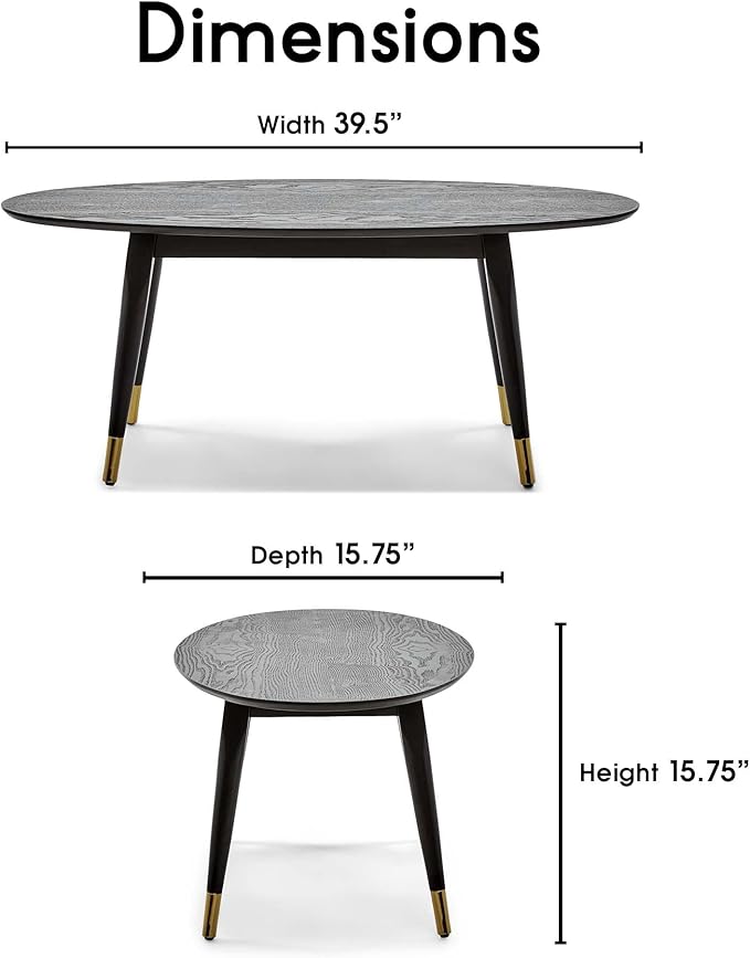 Elle Decor Clemintine Mid-Century Modern Living Room Furniture Collection, Oval Coffee Table, French Black