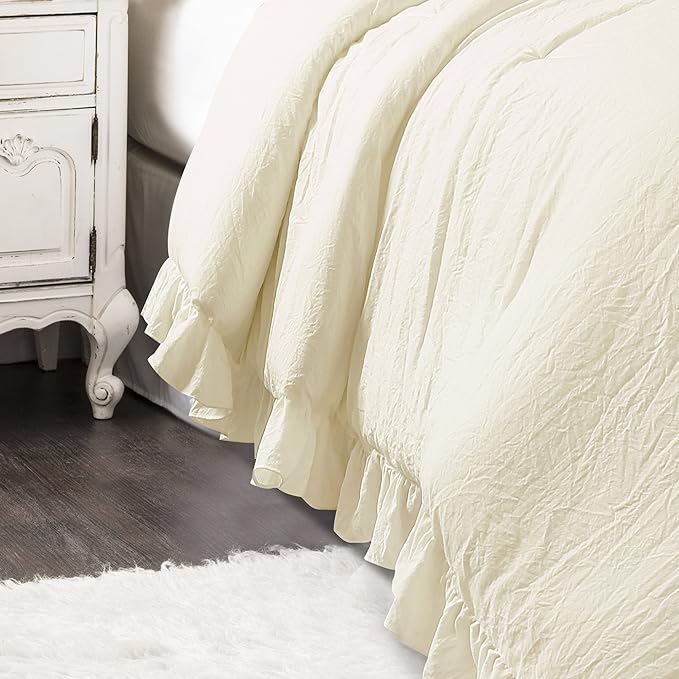 Lush Decor Reyna Ruffle Comforter Set - 3 Piece Cozy Ruffled Bedding Set - Timeless Elegance and Comfort for Bedroom - King, Ivory