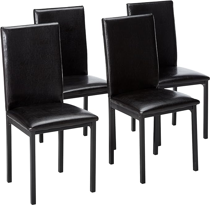 Roundhill Furniture Noyes Faux Leather Metal Frame Dining Chair, Set of 4, Black