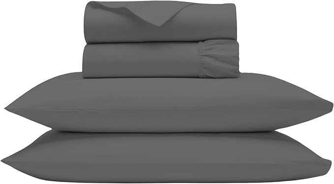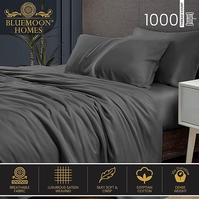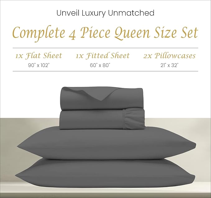 Queen Sheets Egyptian Cotton, 1000 Tc Egyptian Cotton Sheets Queen Size, Extra Deep 18" pocket Queen Sheets, 4 Pc Queen Bed Sheets Solid, Ultra Luxury Sheets Queen Size Deep Pocket, Dark Grey Sheets