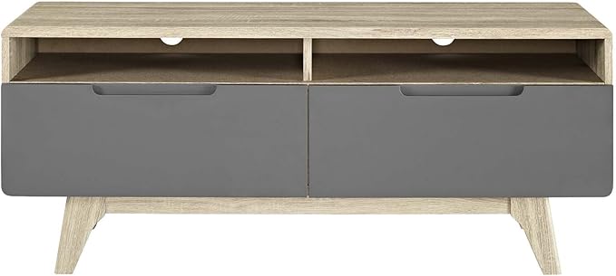 About This MID-CENTURY STAND - Clean lines, rounded corners and two-toned detail lend retro intrigue to this contemporary modern TV...