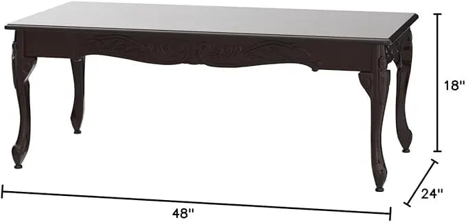 Roundhill Furniture Traditional Ornate Detailing Wood Coffee Table, Dark Cherry