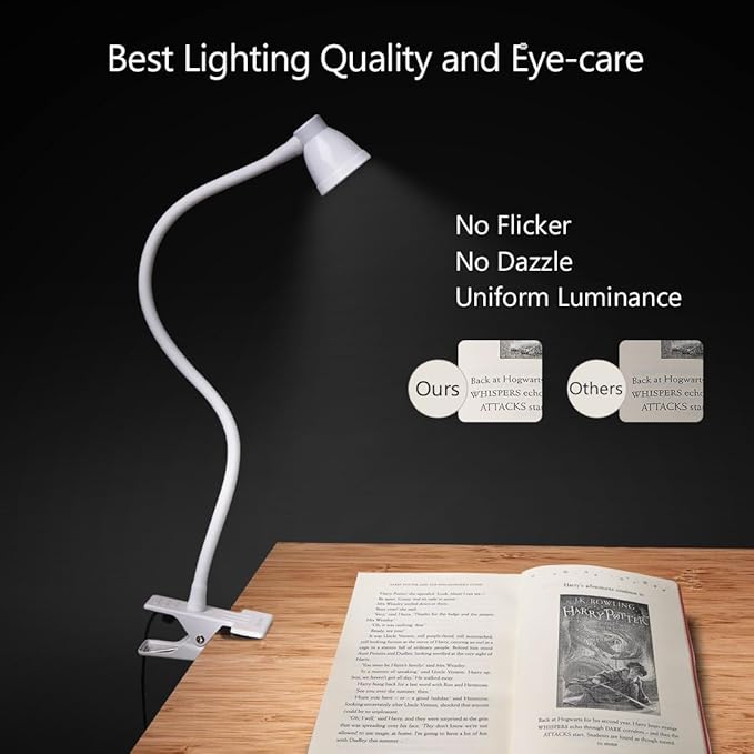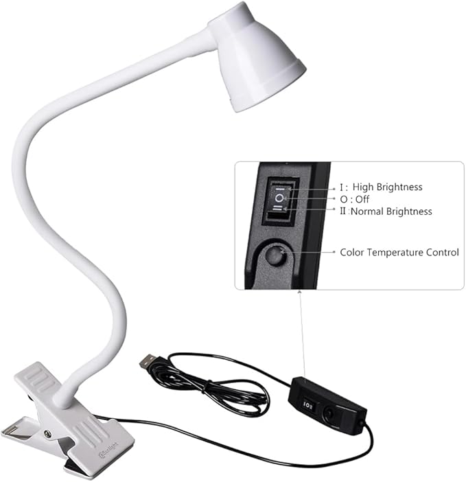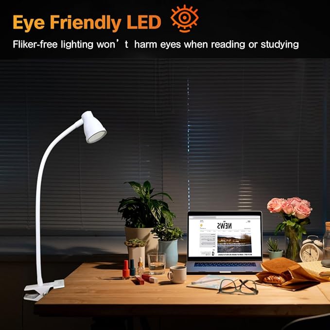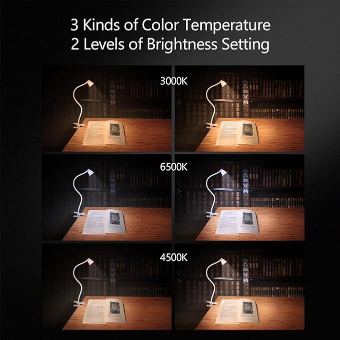 Clip on Reading Light, Clamp Lamp for Desk, 3000-6500K Adjustable Color Temperature, 6 Illumination Modes, 10 Led Beads(White)