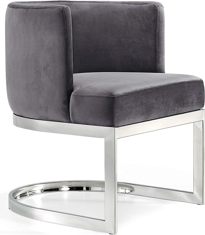 Meridian Furniture Gianna Collection Modern | Contemporary Velvet Upholstered Dining Chair with Polished Chrome Metal Frame, 24" W x 22" D x 29.5" H, Grey