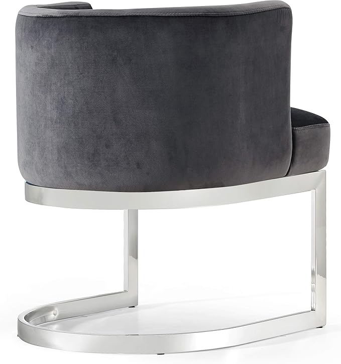 About This Velvet Grey Plush Velvet Polished Chrome Metal Frame Modern | Contemporary Barrel Design Seat Width: 20" W Seat...