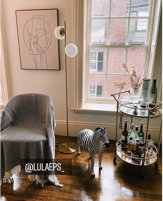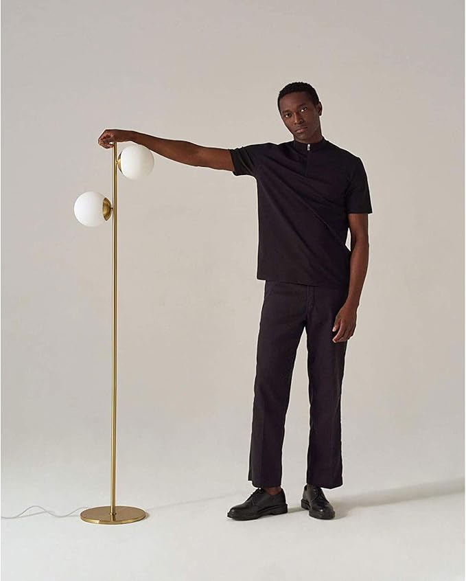 Brightech Sphere Floor Lamp for Living Room, Mid-Century Modern 2 Globe Pole Light for Bedroom, Bright LED Standing Lamps for Offices, Contemporary Living Room Décor – Gold/Antique Brass