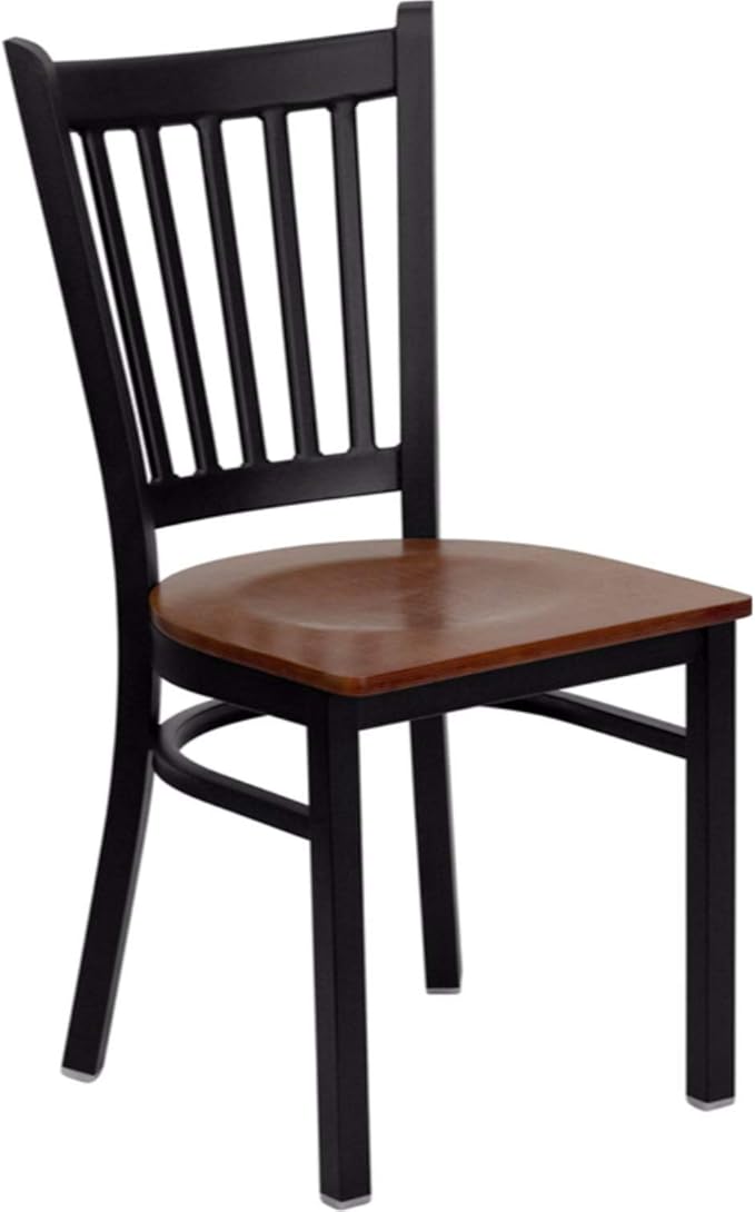 Flash Furniture 2 Pack HERCULES Series Black Vertical Back Metal Restaurant Chair - Cherry Wood Seat