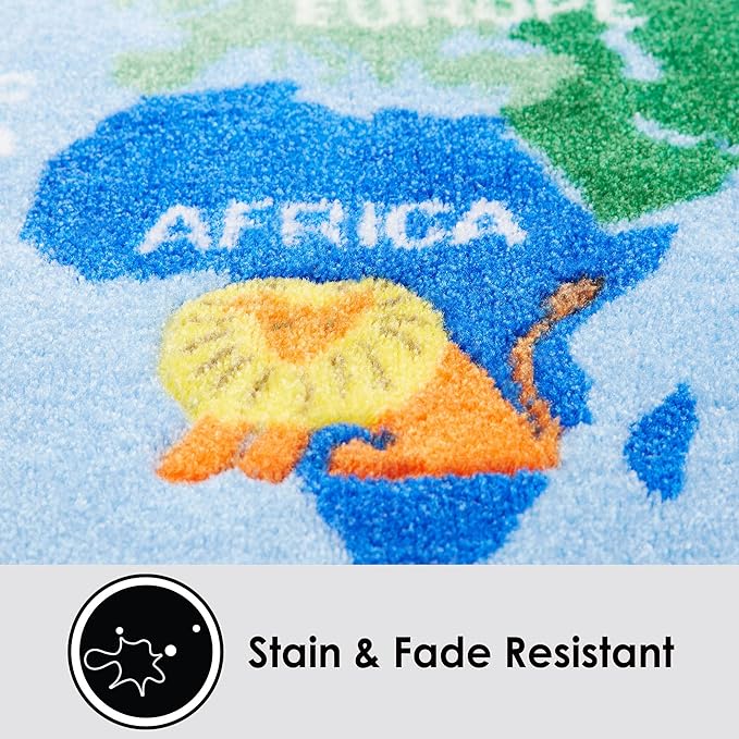 Eric Carle Elementary World Map Kids Machine Washable Area Rug Blue/Red, 35"x51"