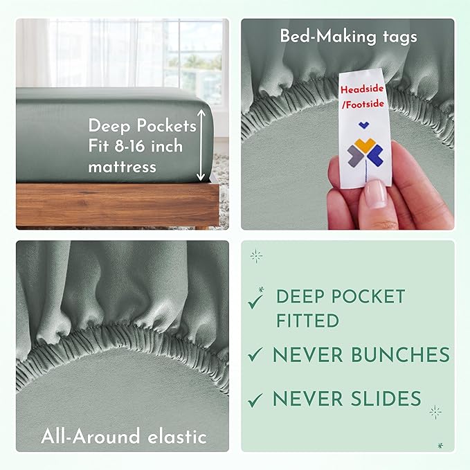 California Design Den - Luxury Full Size Sheet Set - 100% Cotton, 600 Thread Count Deep Pocket Full Size Bed Sheets, Hotel-Quality Cooling Sheets with Sateen Weave - Sage Green