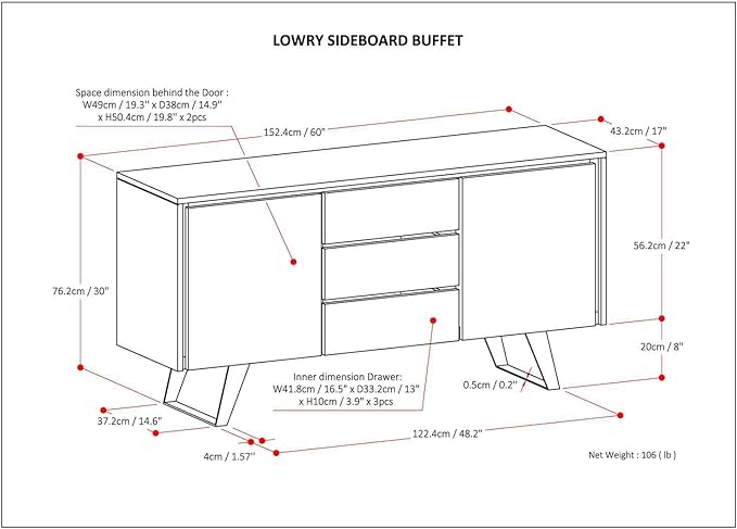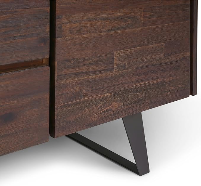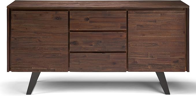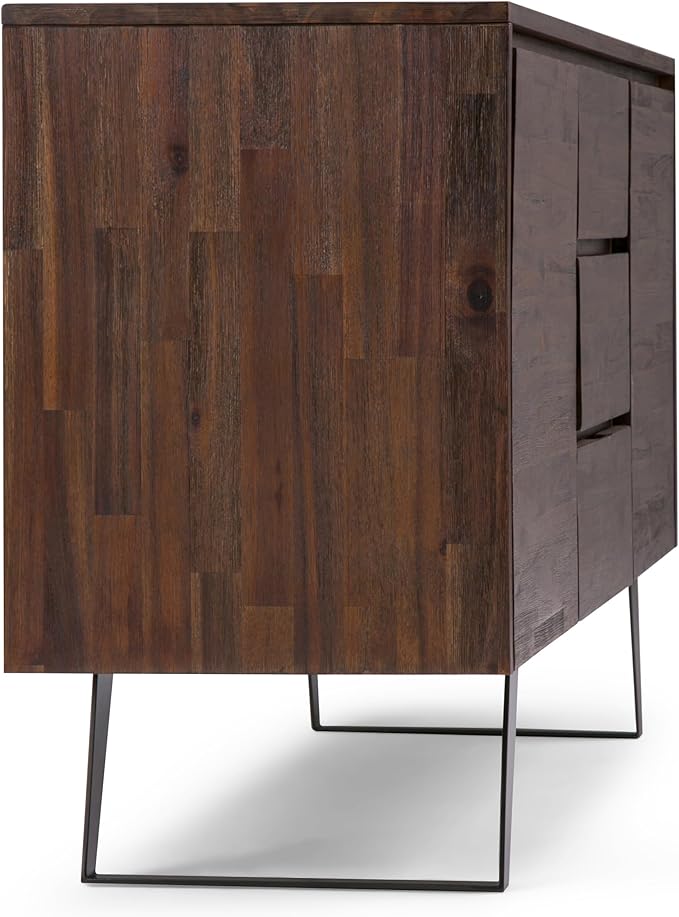 SIMPLIHOME Lowry SOLID ACACIA WOOD and Metal 60 Inch Wide Rectangle Modern Industrial Sideboard Buffet in Distressed Charcoal Brown, For the Dining Room and Kitchen