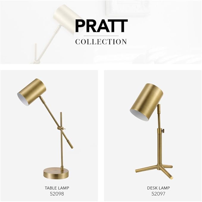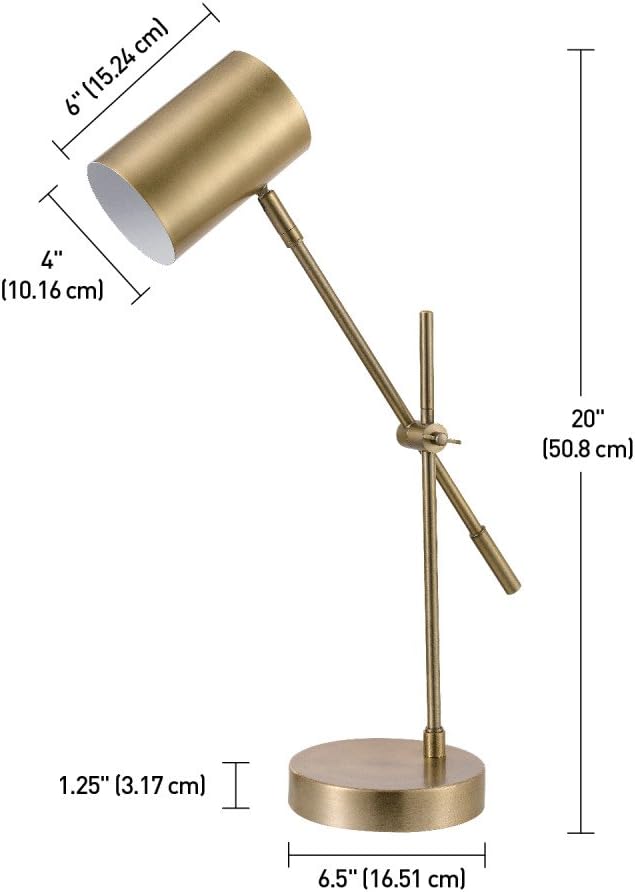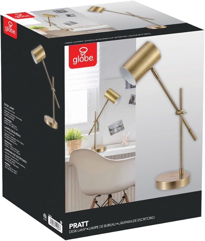 Globe Electric 52098 Pratt 20" Desk/Table Lamp, Matte Brass Finish, Adjustable Height, Balance Arm, in-Line Rocker On/Off Switch