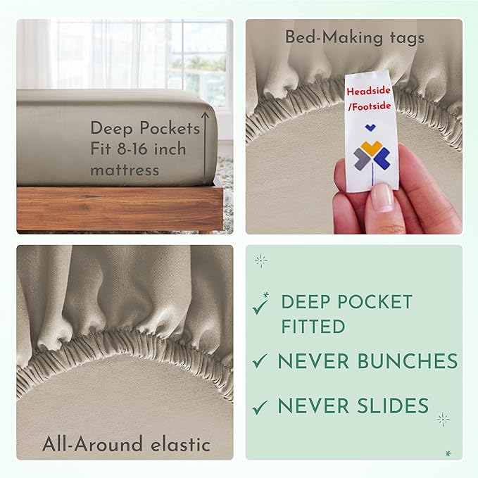 California Design Den Luxury King Size Sheet Set - 100% Cotton, 600 Thread Count Deep Pocket King Sheets, Hotel-Quality Bedding with Sateen Weave - Taupe