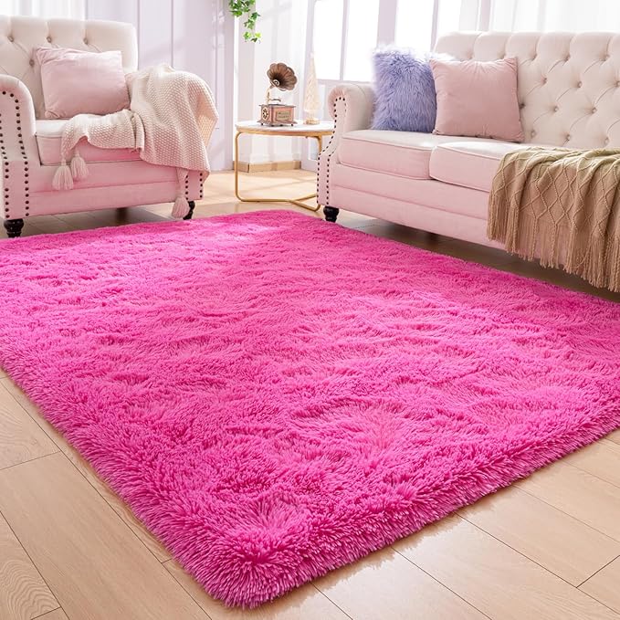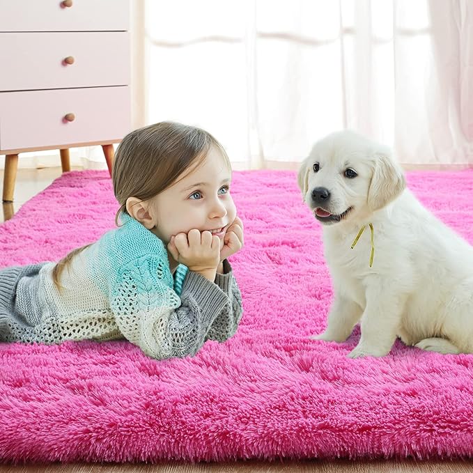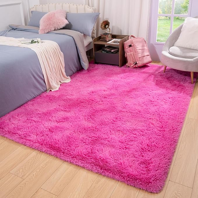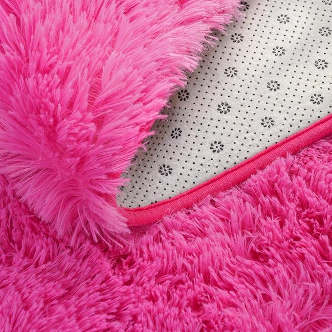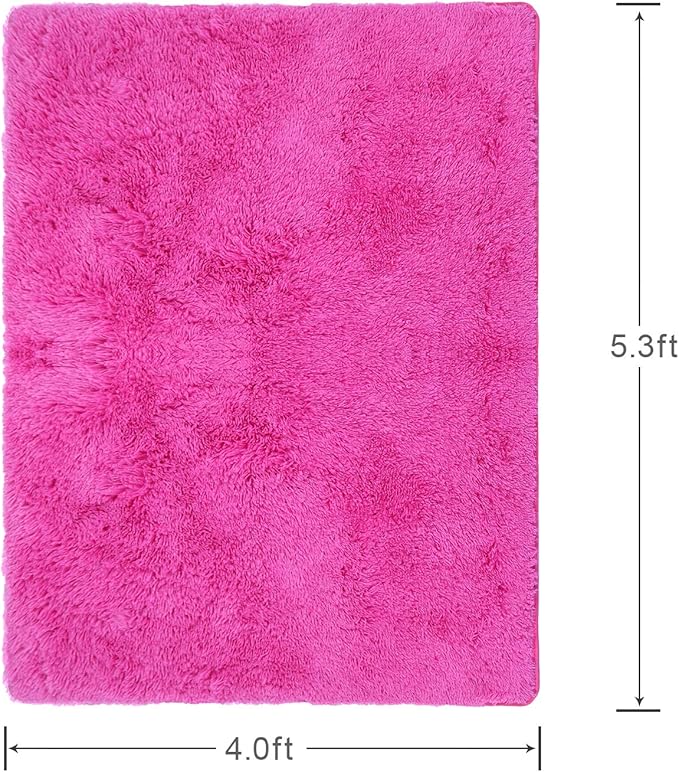 Softlife Ultra Soft Fluffy Area Rugs for Bedroom, Girls and Boys Room Kids Room Nursery Rug, 4 x 5.3 Feet Shaggy Fur Indoor Plush Modern Floor Carpet for Living Room Christmas Decor, Hot Pink