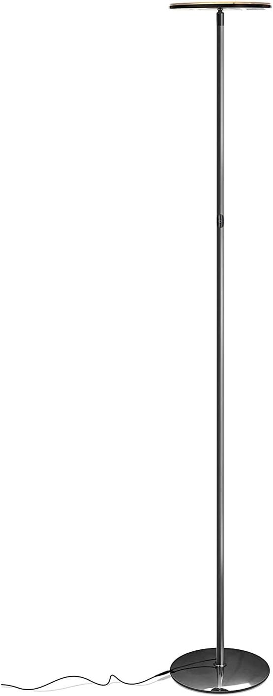Brightech Sky LED Floor lamp, Torchiere Super Bright Floor Lamp for Living Rooms & Offices - Dimmable, Tall Standing Lamp for Bedroom Reading - Black Chrome