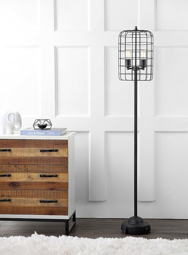 JONATHAN Y JYL4030A Odette 65" Industrial Metal Floor Lamp Industrial,Rustic,Transitional for Bedrooms, Living Room, Office, Reading, Black/Silver