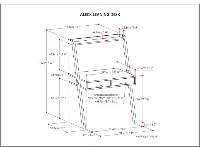 SIMPLIHOME Aleck SOLID WOOD 36 inch Wide Home Office Desk, Writing Table, Workstation, Study Table Furniture in Warm Walnut Brown with 2 Drawers