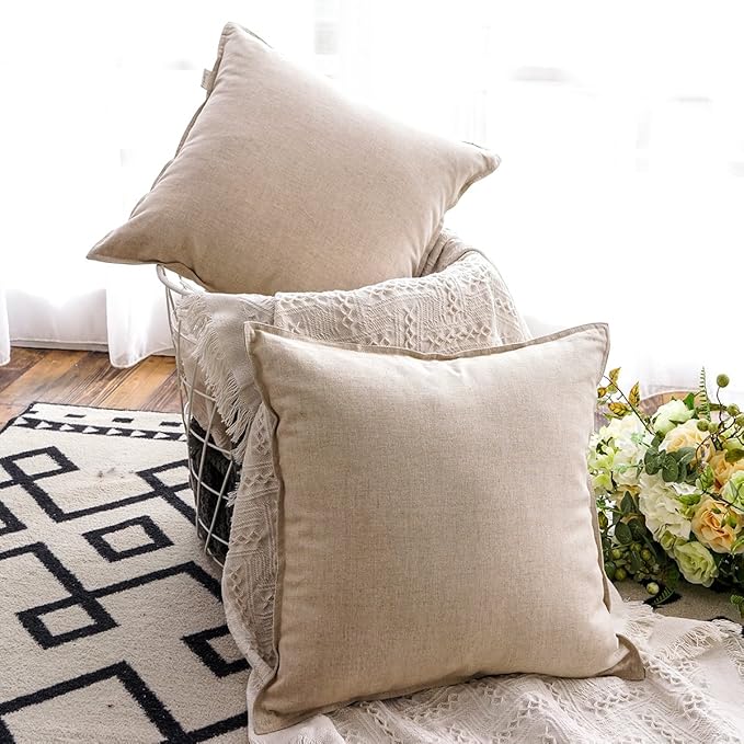 Jeanerlor Set of 2 20"x20" Yellow Pillowcase with Zipper Cousion Cover Decor Cotton Linen to Embellish Students' Dormitory/Study Room/House/Office,(50 x 50cm), Light Linen
