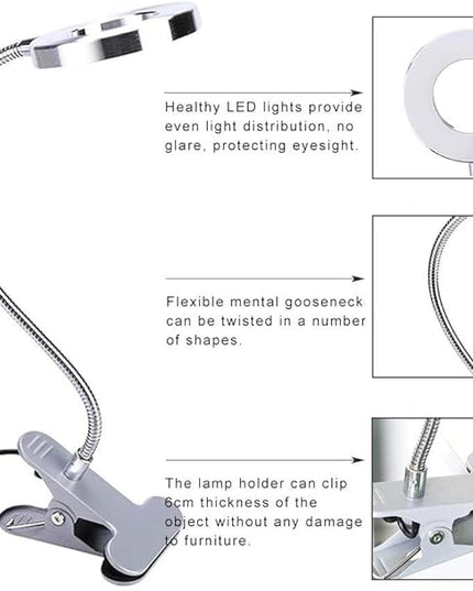 ZJchao Clip on Light, Makeup LED Lights USB Cosmetic Lamp Eyebrow Lip Beauty Salon Desktop Led Lights with Clip Reading Desk Light Book Light for Desk Bed Headboard Makeup