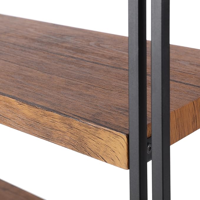 3 Tier Bookshelf Rustic Industrial Bookshelf Wood and Metal, Brown