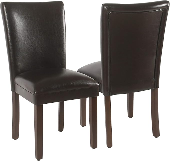 HomePop Parsons Upholstered Accent Dining Chair, Set of 2, Dark Brown Faux Leather