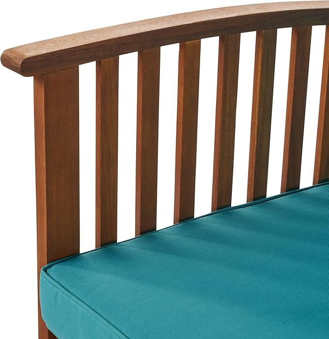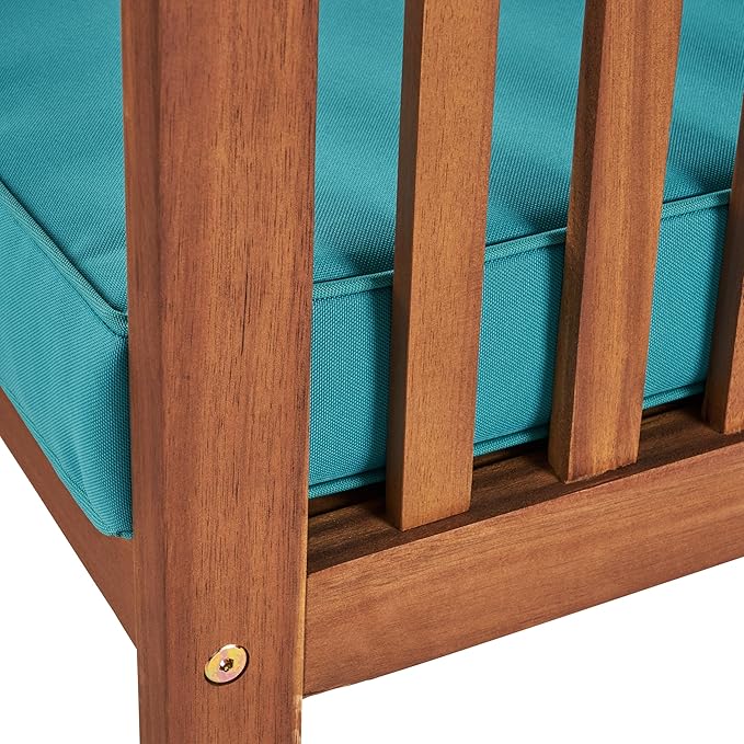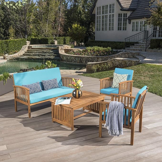 Christopher Knight Home Carolina Outdoor Acacia Wood Sofa Set with Water Resistant Cushions, 4-Pcs Set, Brown Patina / Teal
