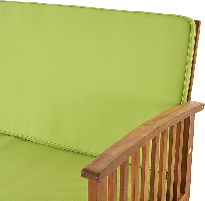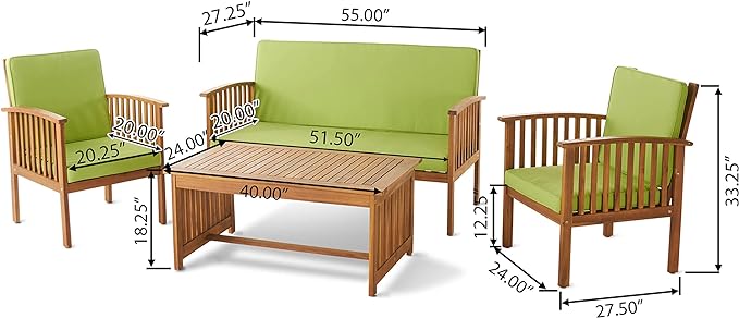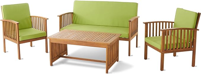 Christopher Knight Home Carolina Outdoor Acacia Wood Sofa Set with Water Resistant Cushions, 4-Pcs Set, Brown Patina / Light Green