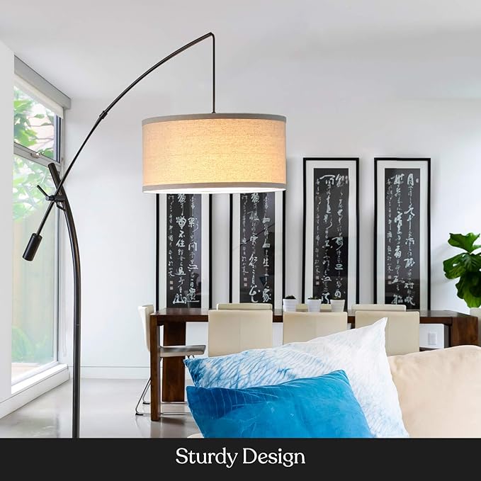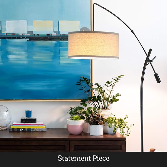 Brightech Grayson LED Floor Lamp, Modern Arc Lamp for Office & Living Room, Tall Lamp with Adjustable Arm, Standing Lamp in Industrial Style for Bedroom Reading - Black