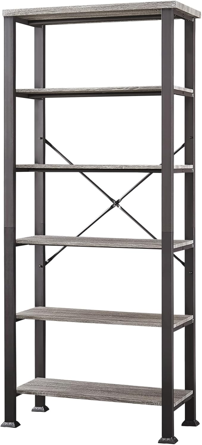 HOMBAZAAR Bookshelf, 6-Tier Vintage Industrial Book Shelf, Rustic Wood and Metal Bookcase and Bookshelves, Free Standing Storage Large Bookshelf for Living Room, Bedroom and Kitchen, Grey Oak