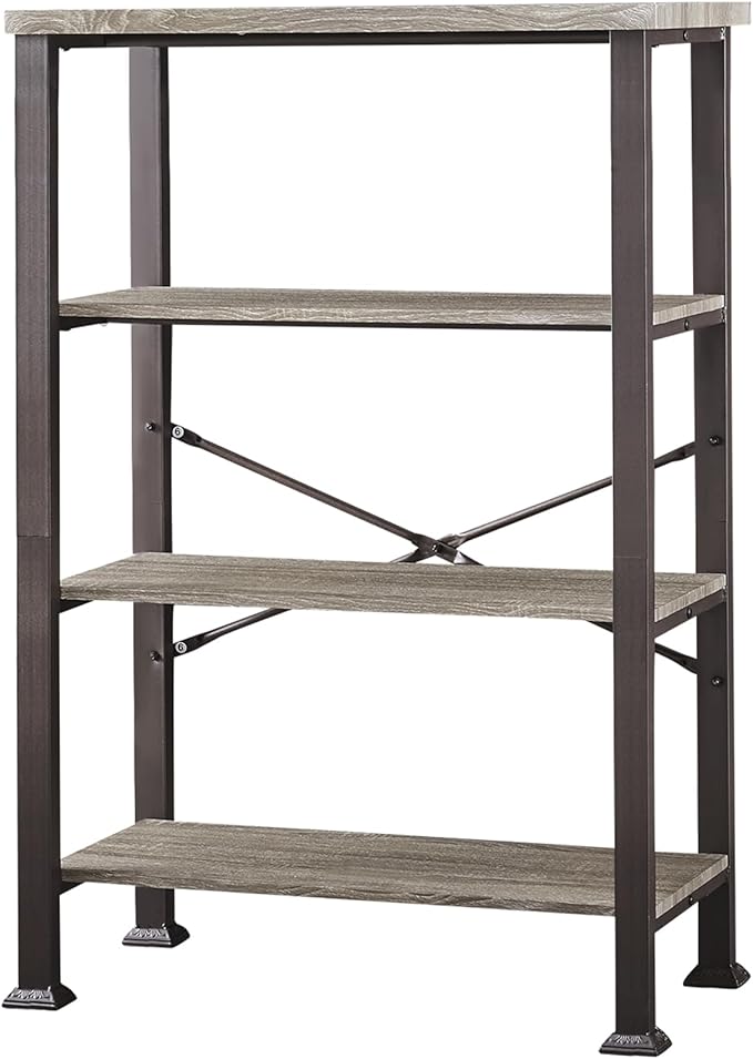 HOMBAZAAR Bookshelf, 4-Tier Vintage Industrial Book Shelf, Rustic Wood and Metal Bookcase and Bookshelves, Free Standing Storage Large Bookshelf for Living Room, Bedroom and Kitchen, Grey Oak