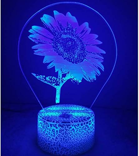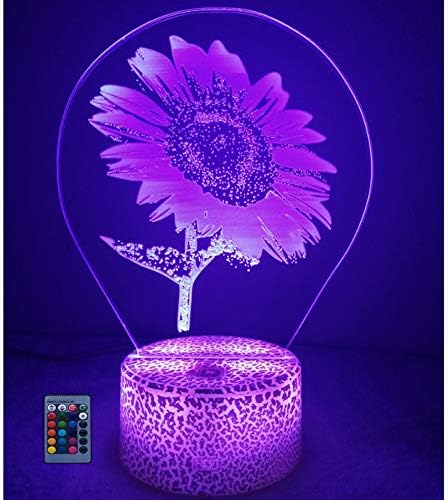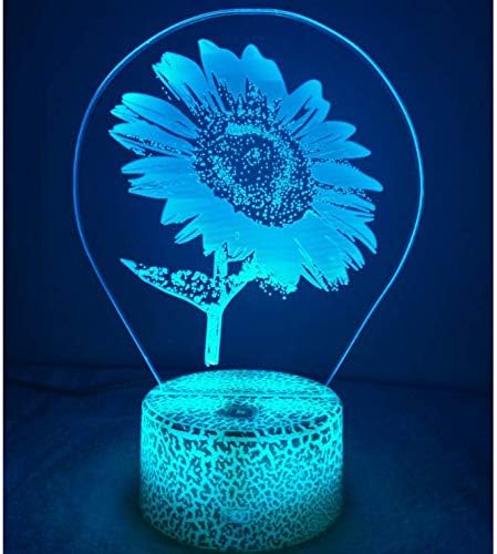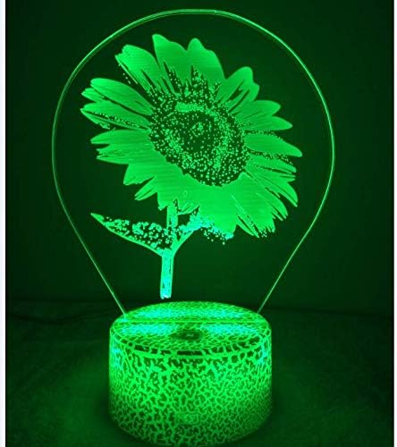 3D Sunflower Night Light USB Powered Touch Switch Remote Control LED Decor Optical Illusion 3D Lamp 7/16 Colors Changing Xmas Children Kids Toy Christmas Brithday Gift