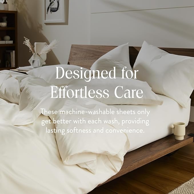 Brooklinen Luxury Sateen 4 Piece Queen Size Sheets Set in Cream - 100% Cotton Sateen Sheets - 1 Fitted Sheet, 1 Flat Sheet, 2 Pillowcases - Best Luxury Sheets
